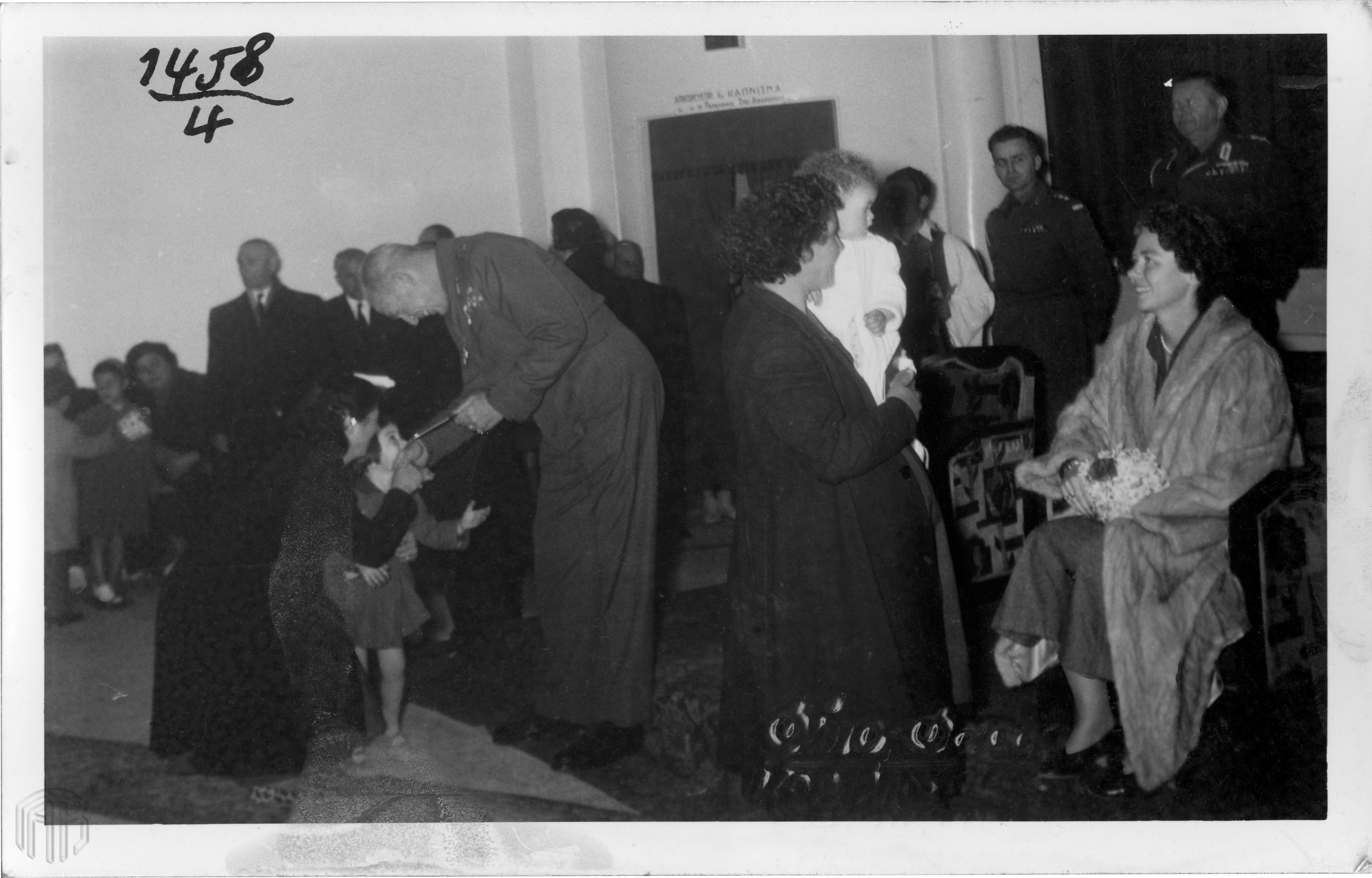 Φωτογραφία των Βασιλέων Παυλου και Φρειδερίκης που χαιρετούν Μεσολογγίτες